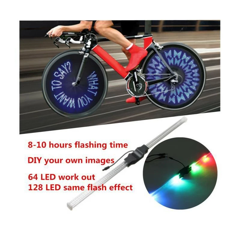 Caractéristiques 1. 64pcs ultra-lumineux 5050 RGB LED forment deux barres lumineuses 2. Utilisation de PC + ABS matériau transparent à longue durée de vie 3. Deux extrémités de la barre lumineuse fixée sur le rayon avec clip et vis facilité d’installation et de déverrouillage rapide 4. Vous pouvez importer vos propres designs et vous pouvez enregistrer jusqu’à 21 images, et vous pouvez voir le motif complet de la