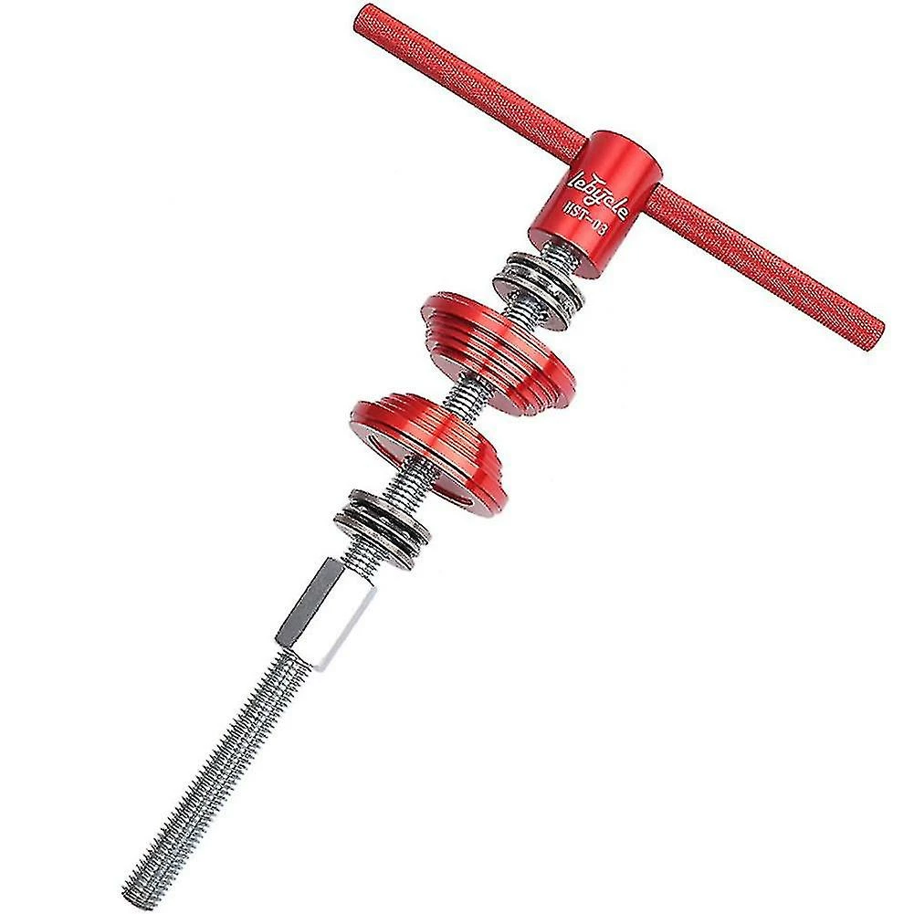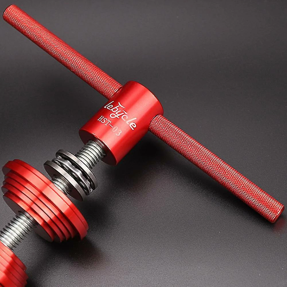 Features: *Upgraded headset/Bottom Bracket BB press-in tool, It is a double-sided planar thrust bearing, which saves effort *Aluminum alloy material, anodized surface, beautiful logo *Aluminum alloy press-in block, which can install most common headsets and press-in bottom brackets on the market *225mm lengthened threaded rod, tight density and high strength Product parameters: *Material: Aluminum alloy *color: red *Process: CNC, surface anodizing *Weight: about 483 grams *Style: double-sided plane thrust bearing Package list: Aluminum alloy handle*2 Screw rod*1 Press block*2 Plane thrust bearing*2 Fixing nut*1 Note: 1. The real color of the item may be slightly different from the pictures shown on website caused by many factors such as brightness of your monitor and light brightness. 2. Please allow slight manual measurement deviation for the data.